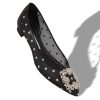 Manolo Blahnik Women’s Style Chilanghi | Blue Satin Jewel Buckle Flat Mules | Blue