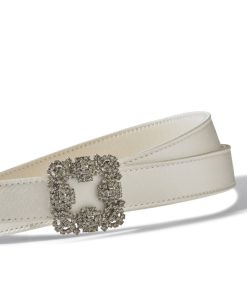 Manolo Blahnik Women’s Hangisi Belt Mini | Dark Fuchsia Satin Crystal Buckled Belt | Pink