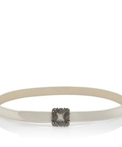 Manolo Blahnik Women’s Hangisi Belt Mini | Dark Fuchsia Satin Crystal Buckled Belt | Pink