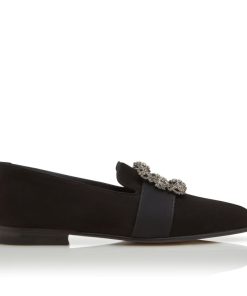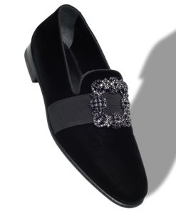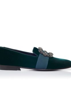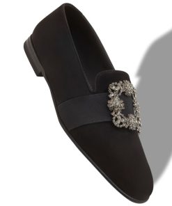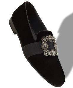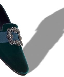 Manolo Blahnik Carlton | Men’s Dark Blue Velvet Jewelled Buckle Loafers | Blue | Men’s Style