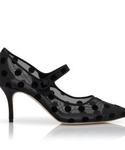Manolo Blahnik Women’s Style Campariflatmesh | Black Mesh Polka Dot Mary Jane Flat Pumps | Multi