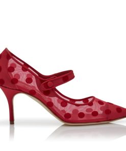 Manolo Blahnik Women’s Style Camparimesh | Red Mesh Polka Dot Pointed Toe Pumps | Miscellaneous