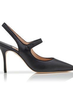 Manolo Blahnik Women’s Style Camparisli | Black Nappa Leather Pointed Toe Slingback Pumps | Black