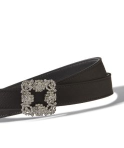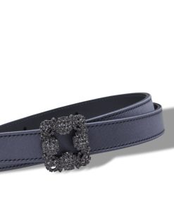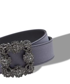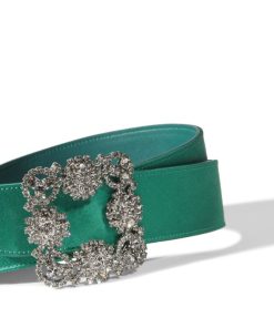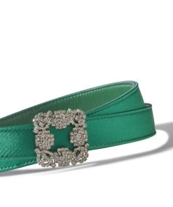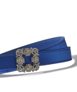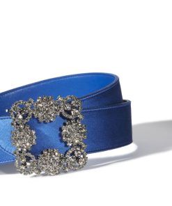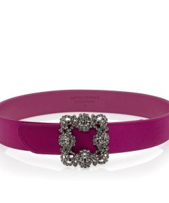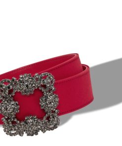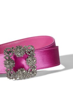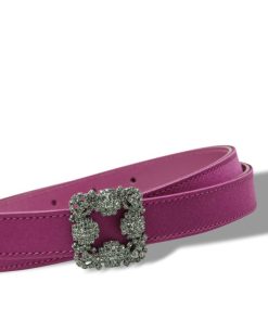 Manolo Blahnik Women’s Hangisi Belt Mini | Dark Fuchsia Satin Crystal Buckled Belt | Pink