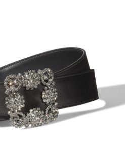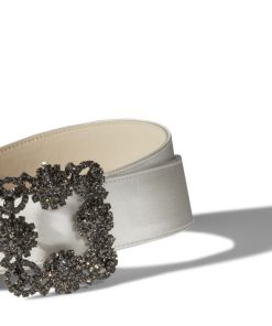 Manolo Blahnik Women’s Hangisi Belt Mini | Light Beige Satin Crystal Buckled Belt | Nude