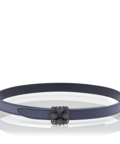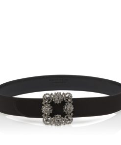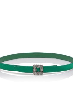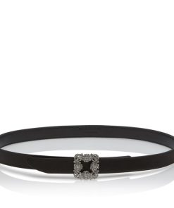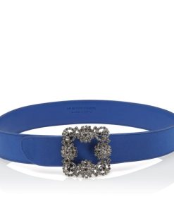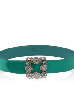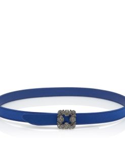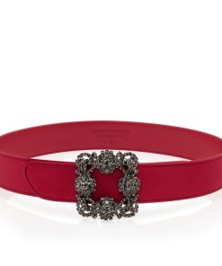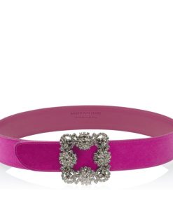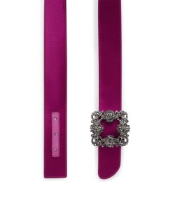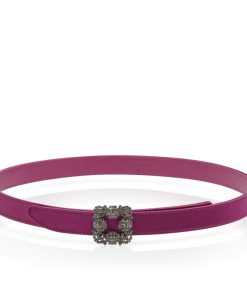 Manolo Blahnik Women’s Hangisi Belt Mini | Dark Fuchsia Satin Crystal Buckled Belt | Pink