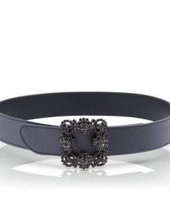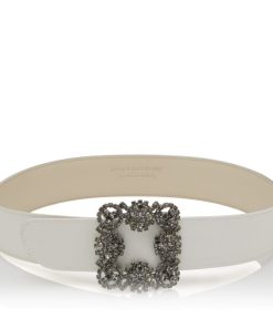 Manolo Blahnik Women’s Hangisi Belt Mini | Light Beige Satin Crystal Buckled Belt | Nude