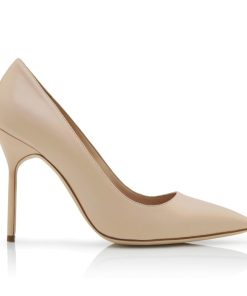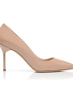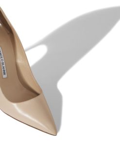 Manolo Blahnik Women’s Style Bbflat | Light Beige Patent Leather Pointed Toe Flat Pumps | Nude