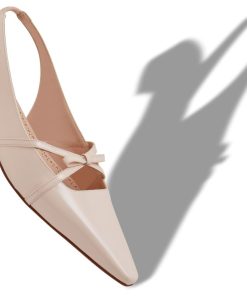 Manolo Blahnik Women’s Style Dariasli | White Patent Leather Bow Detail Slingback Flat Pumps | White