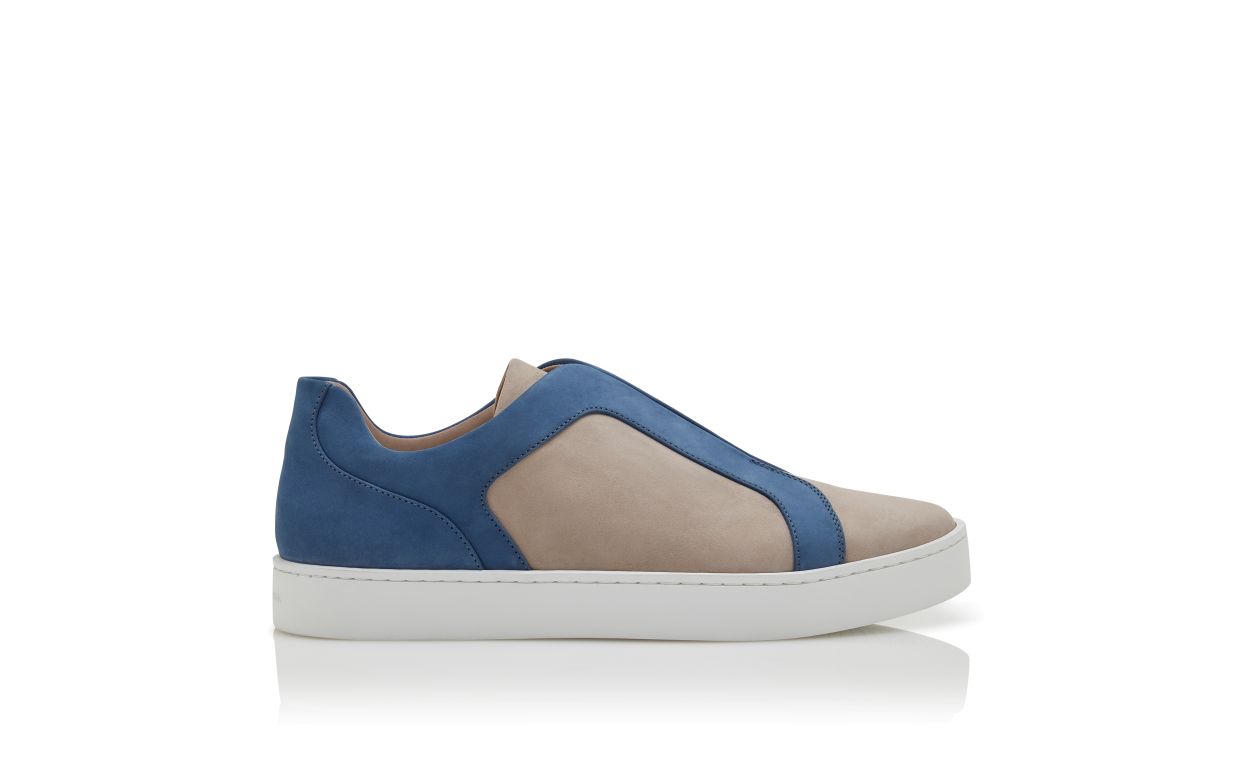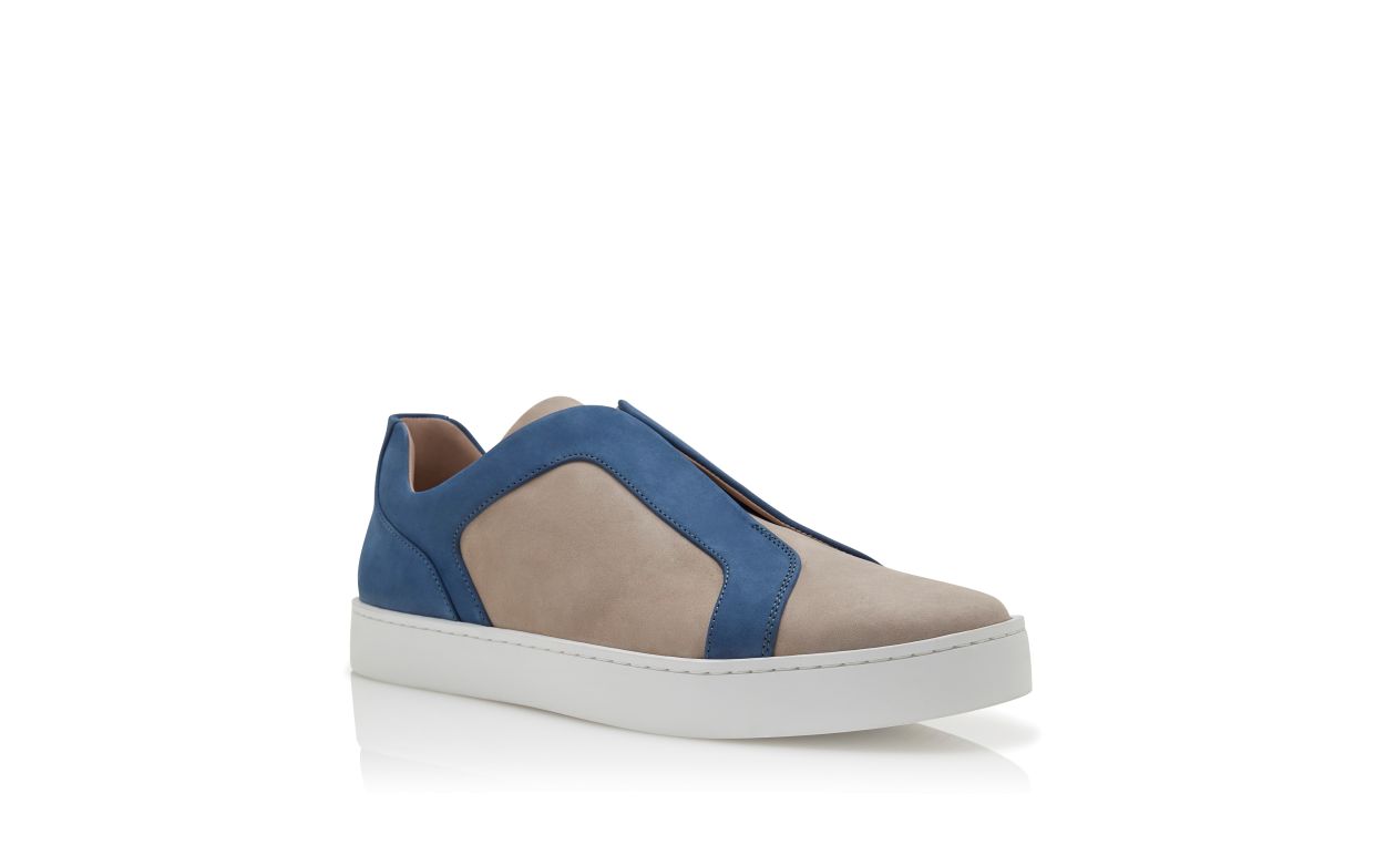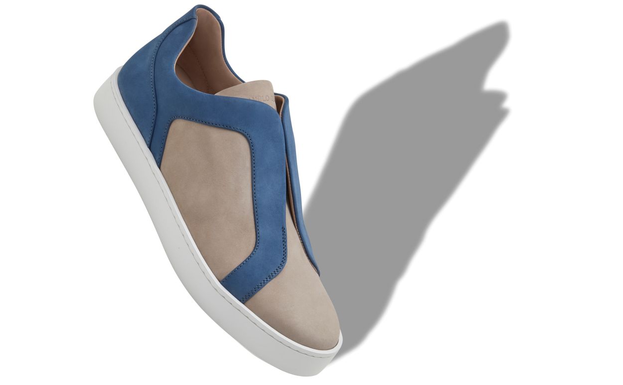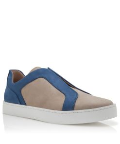 Grey calf leather low cut sneakers featuring blue cut-out design detail, slip-on closure and rubber sole. Upper: 100% calf leather. Sole: 100% rubber. Lining: 100% calf leather.Heel measures 10 mm.UK sizing.Made in Italy.