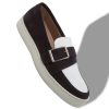 Grey suede slippers featuring slip-on design and stitching details. Finished with flat rubber sole.Upper: 100% calf suede. Sole: 80% rubber, 20% calf leather. Lining: 100% calf leather.Heel measures 10 mm.UK sizing.Made in Italy.