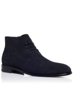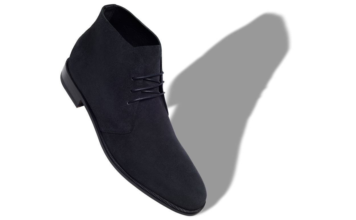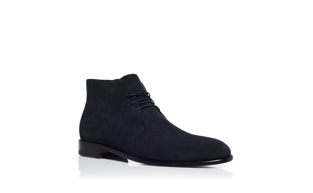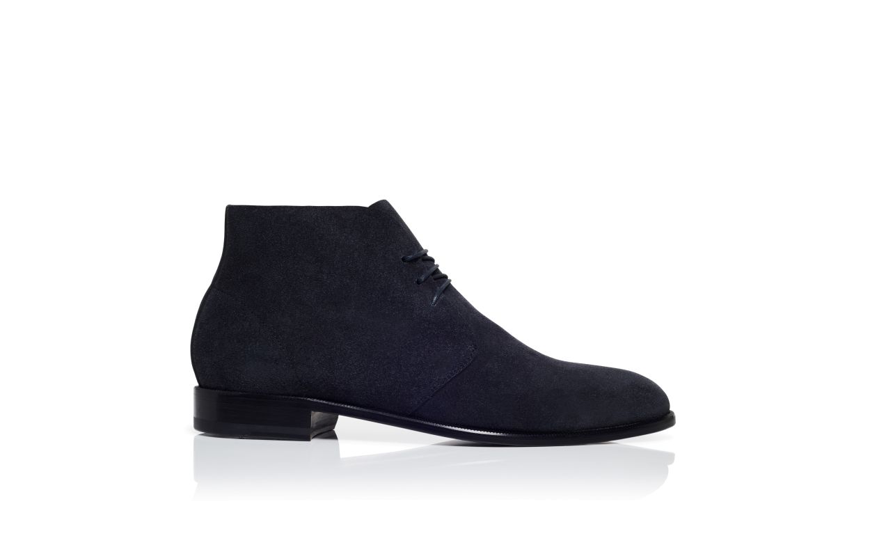 Navy blue suede round toe ankle boots featuring lace-up closure.Upper: 100% calf suede. Sole: 95% calf leather, 5% rubber. Lining: Unlined.Heel measures 10 mm.UK sizing.Made in Italy.