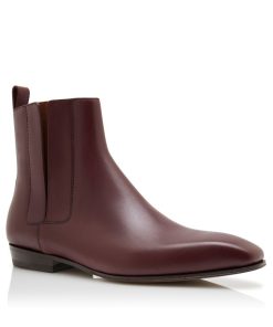 Manolo Blahnik Bruton | Men’s Dark Red Calf Leather Ankle Boots | Red | Men’s Style