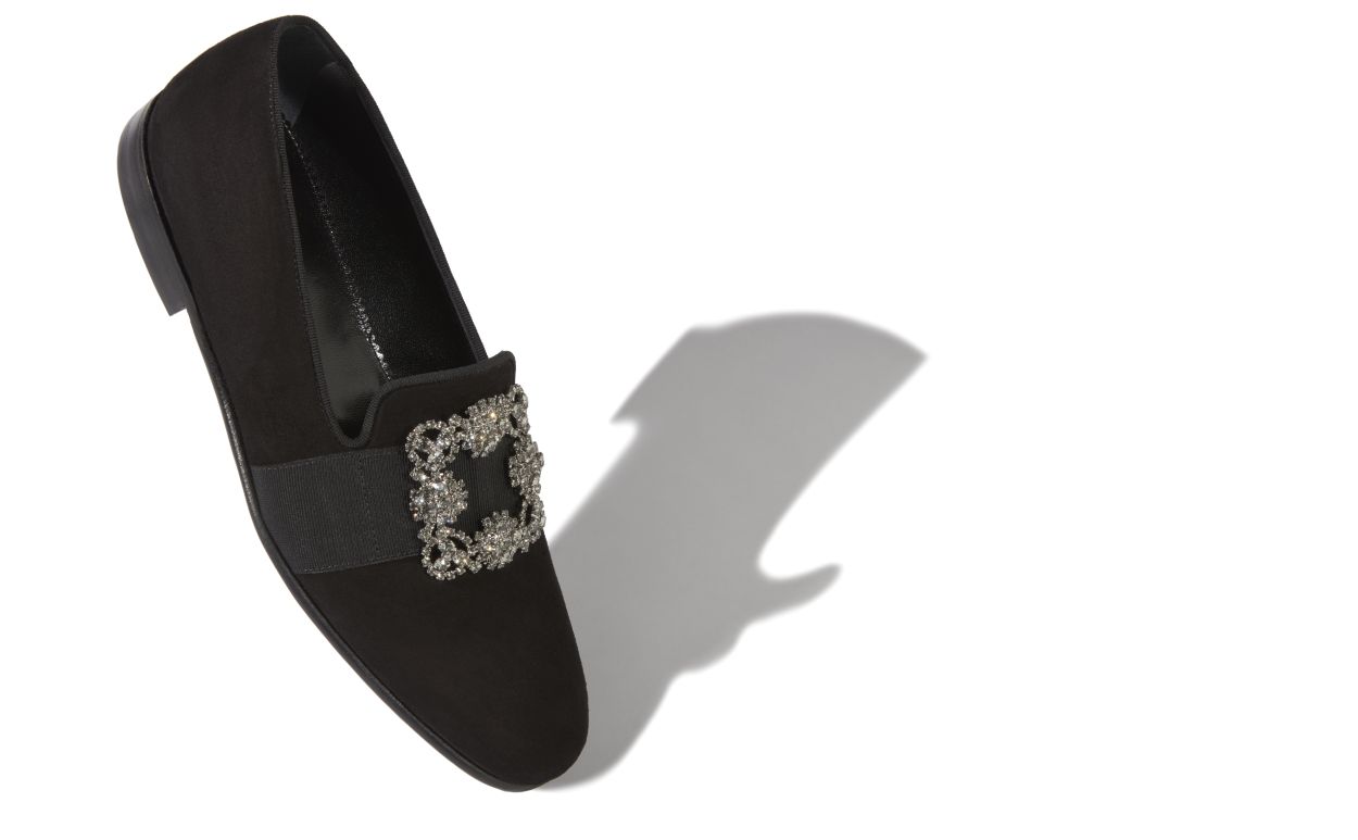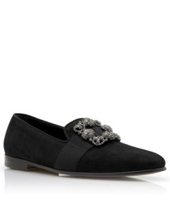 Manolo Blahnik Carlton | Men’s Black Suede Jewelled Buckle Loafers | Black | Men’s Style