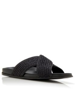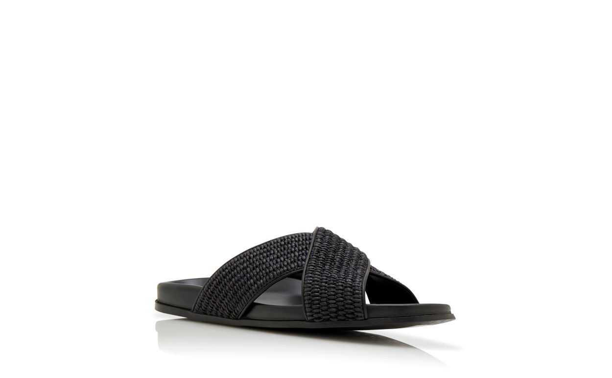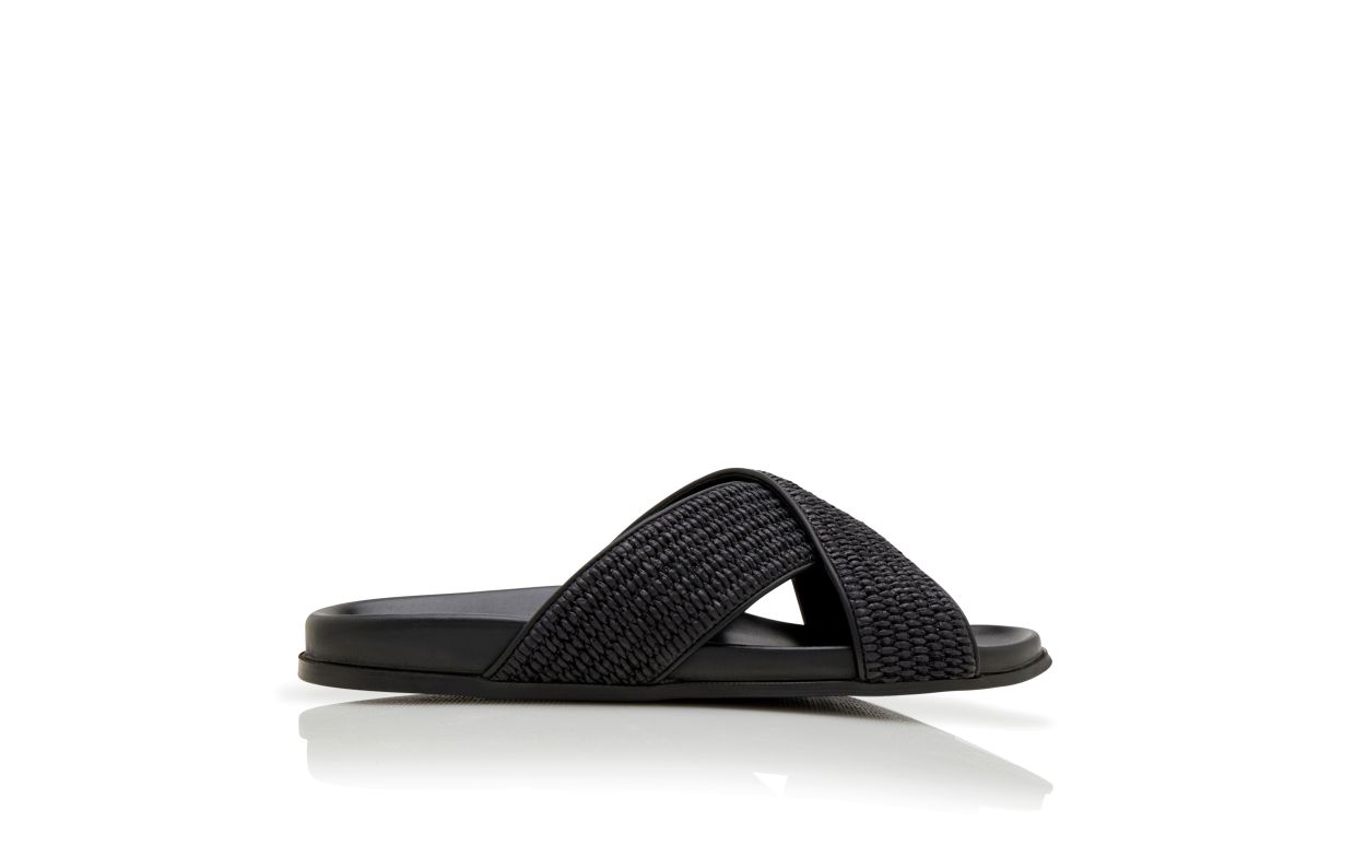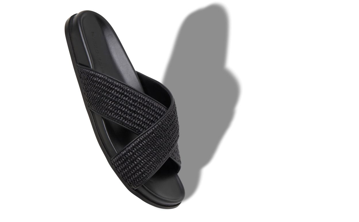 Manolo Blahnik Chiltern | Men’s Black Natural Weave Flat Sandals | Black | Men’s Style