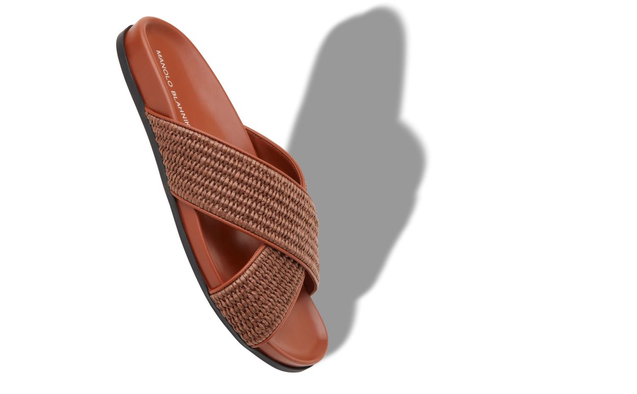 Manolo Blahnik Chiltern | Men’s Dark Brown Raffia Flat Sandals | Brown | Men’s Style