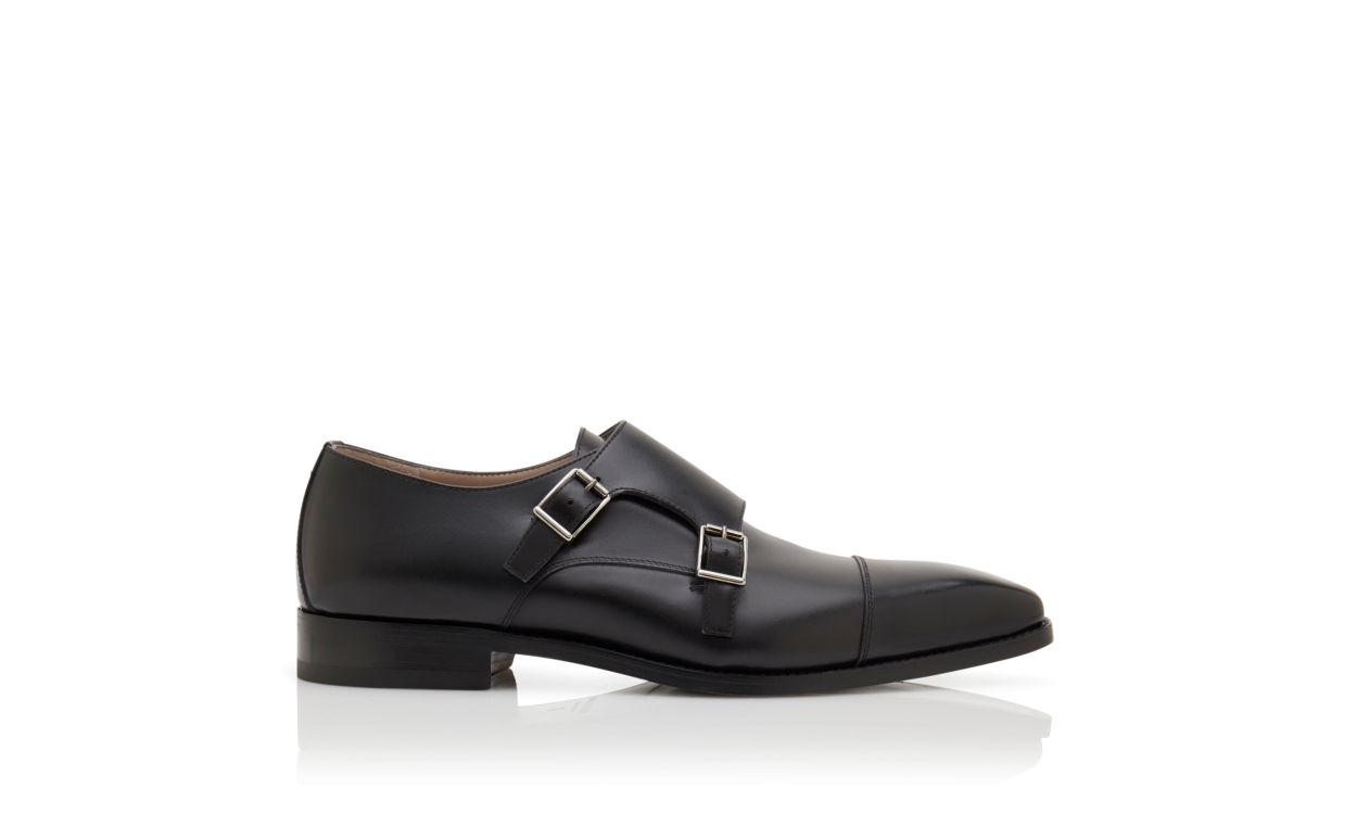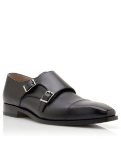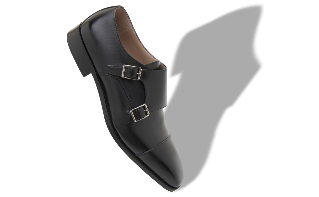Black calf leather monk strap shoes featuring stitch detail and silver-toned buckles.Upper: 98% calf leather, 2% fabric. Sole: 70% calf leather 30% rubber. Lining: 100% calf leather.Heel measures 10 mm.UK sizing.Made in Italy.