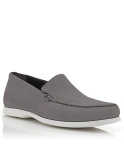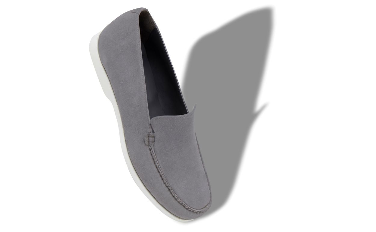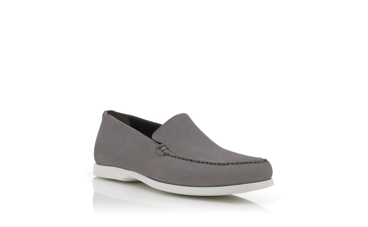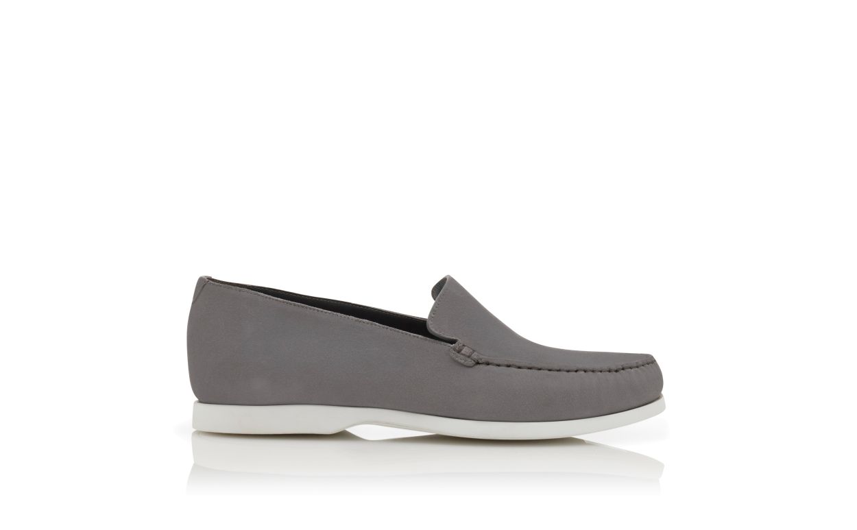 Grey suede round toe boat shoes featuring apron cut design and stitch detail. Finished with white rubber sole.Upper: 100% calf suede. Sole: 100% rubber. Lining: 100% calf leather.Heel measures 10 mm.UK sizing.Made in Italy.