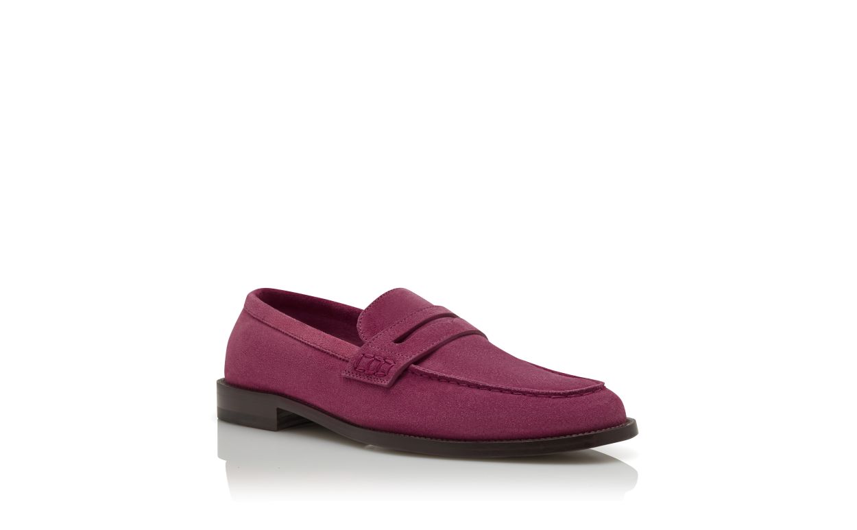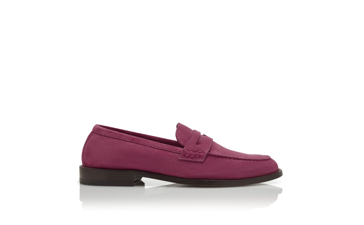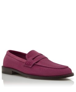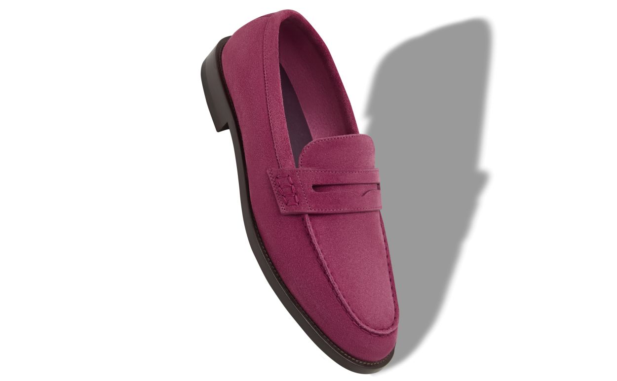 Pink suede penny loafers featuring apron cut design and decorative penny keeper with stitch detail.Upper: 100% calf suede. Sole: 100% calf leather. Lining: Unlined.Heel measures 10 mm.UK sizing.Made in Italy.