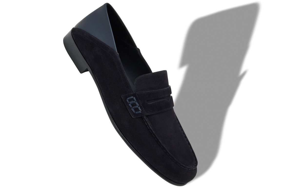 Manolo Blahnik Plymouth | Men’s Navy Blue Suede Penny Loafers | Blue | Men’s Style