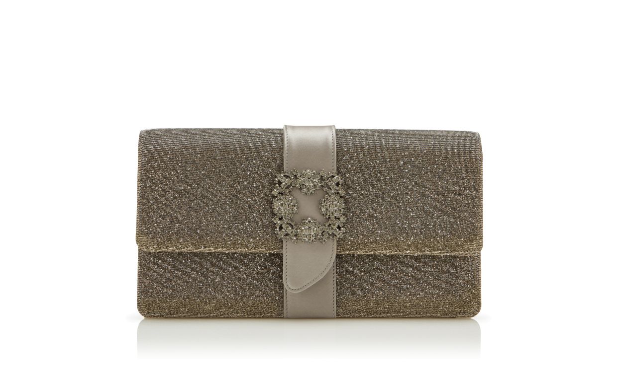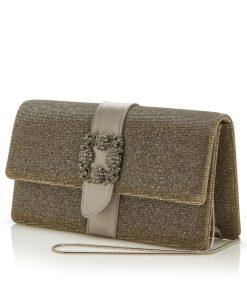 Manolo Blahnik Women’s Capri Glitter | Dark Gold Glitter Jewel Buckle Clutch