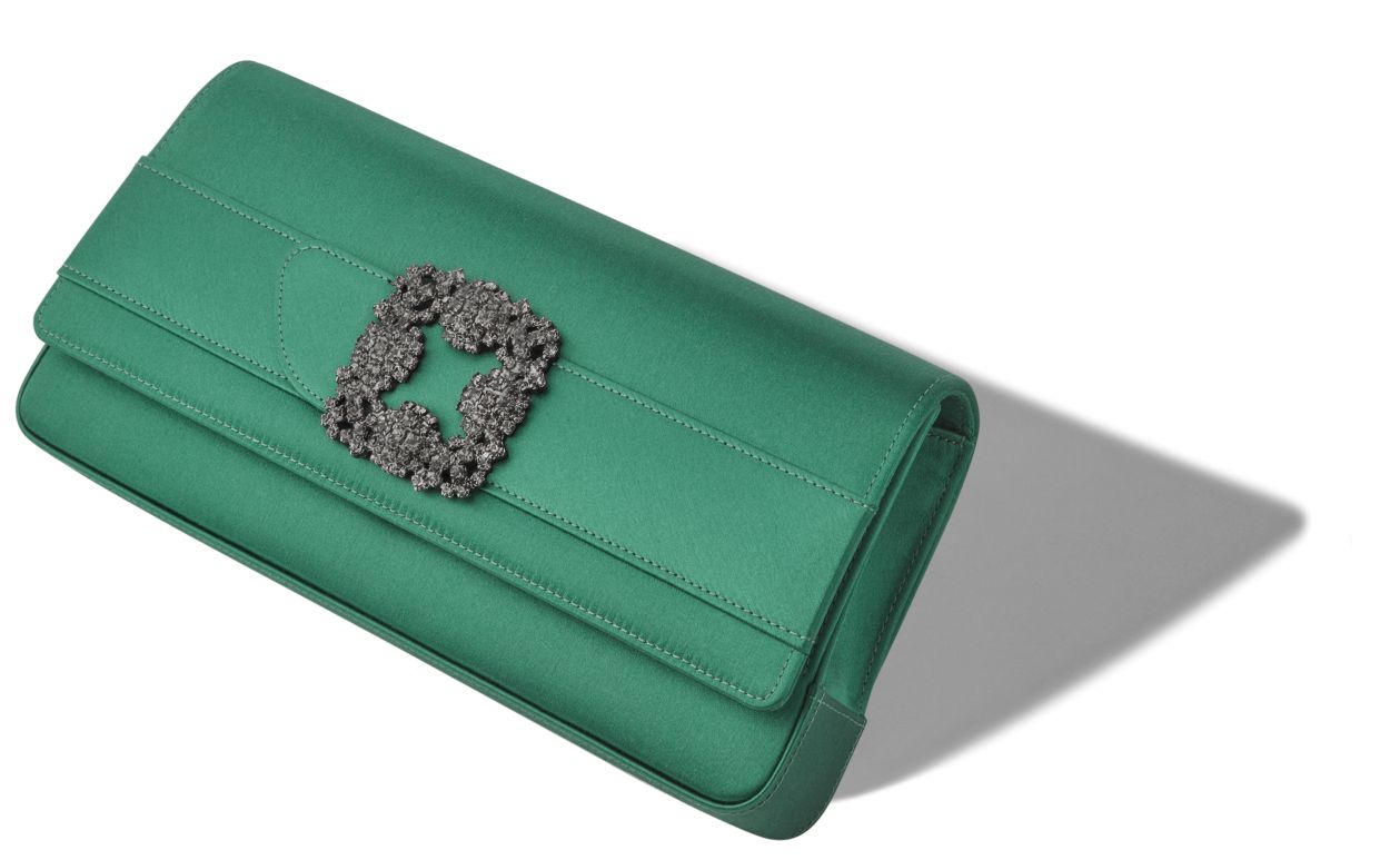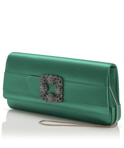 Manolo Blahnik Women’s Gothisi | Bright Green Satin Jewel Buckle Clutch | Green