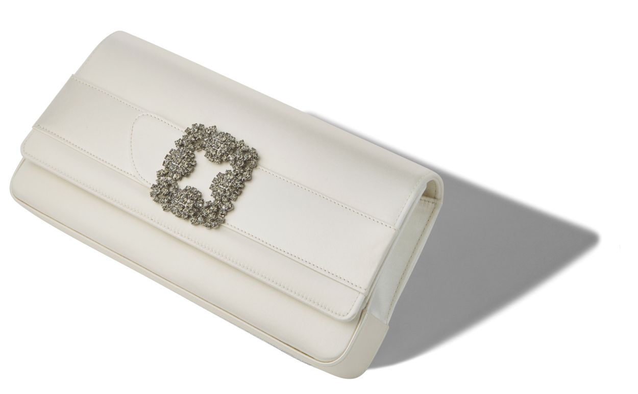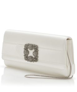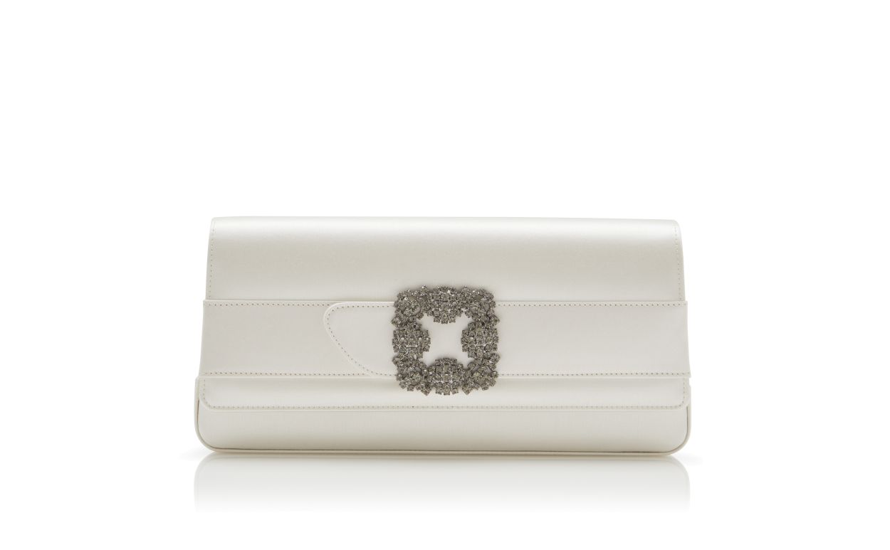 Manolo Blahnik Women’s Gothisi | Light Cream Satin Jewel Buckle Clutch | Cream