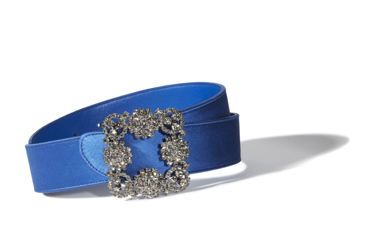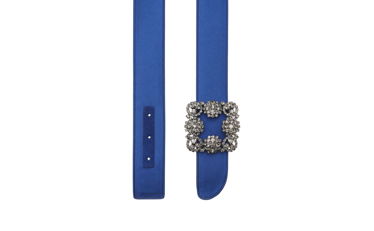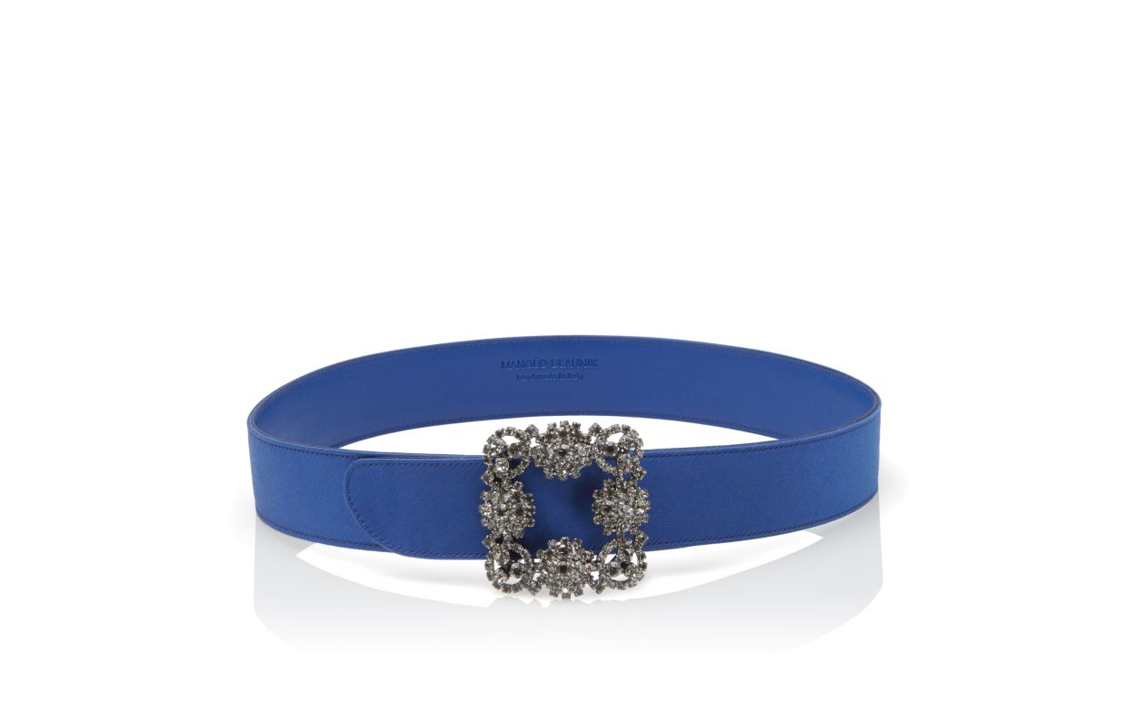 Manolo Blahnik Women’s Hangisi Belt | Blue Satin Crystal Buckled Belt | Blue