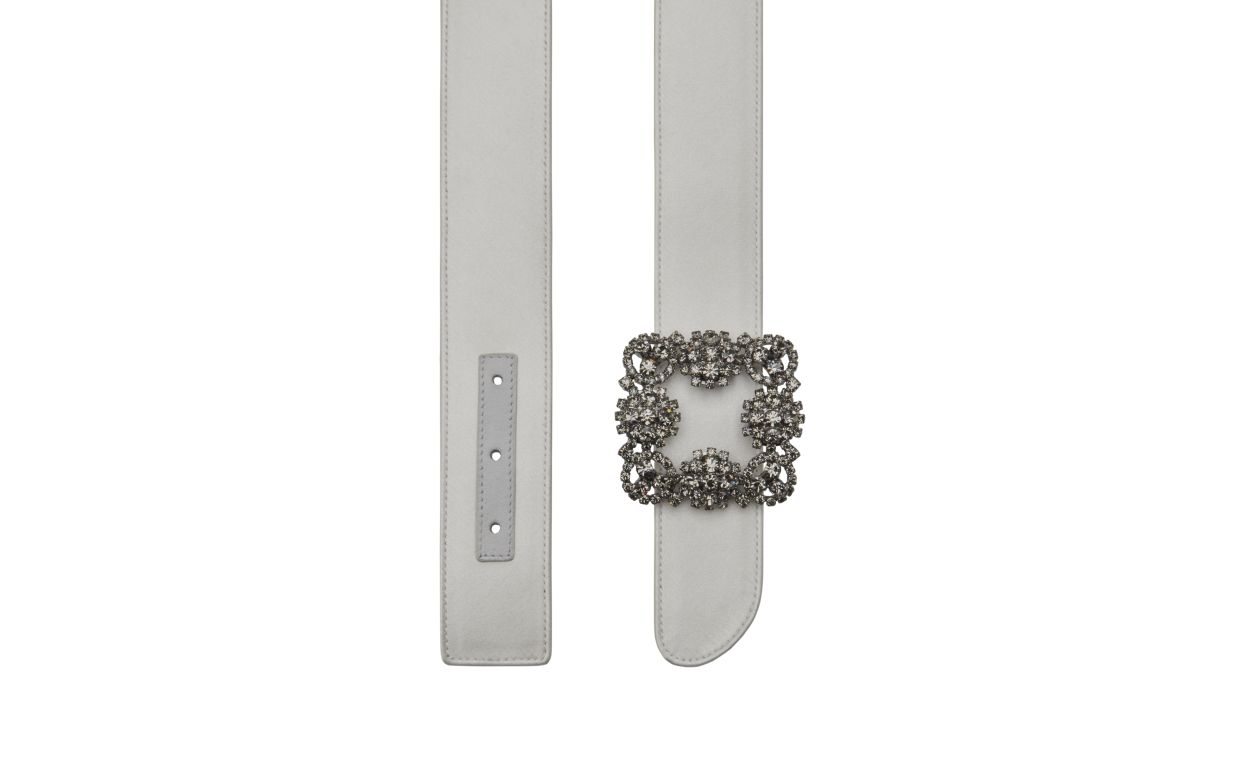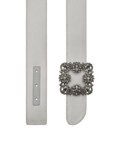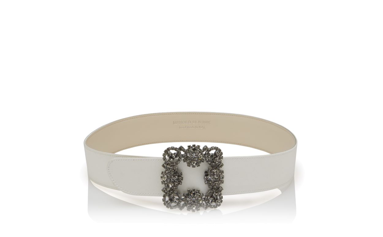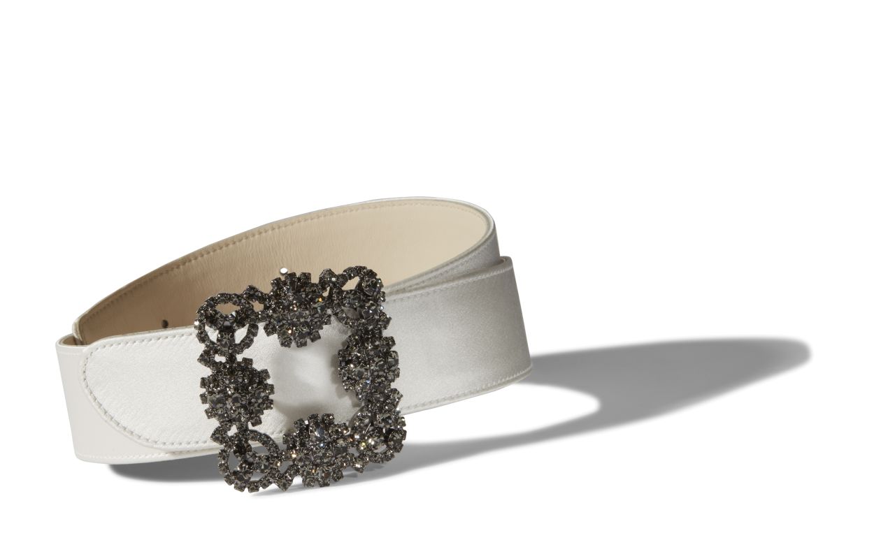 Manolo Blahnik Women’s Hangisi Belt | Off-white Satin Crystal Buckled Belt | Cream