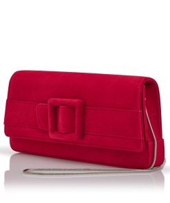 Manolo Blahnik Women’s Maygot | Red Suede Buckle Clutch | Red