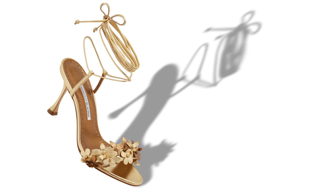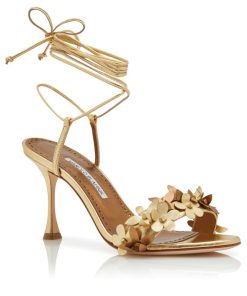 Manolo Blahnik Women’s Style Anista | Gold Nappa Leather Ankle Strap Sandals