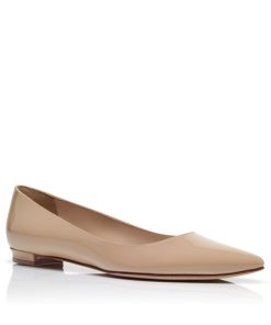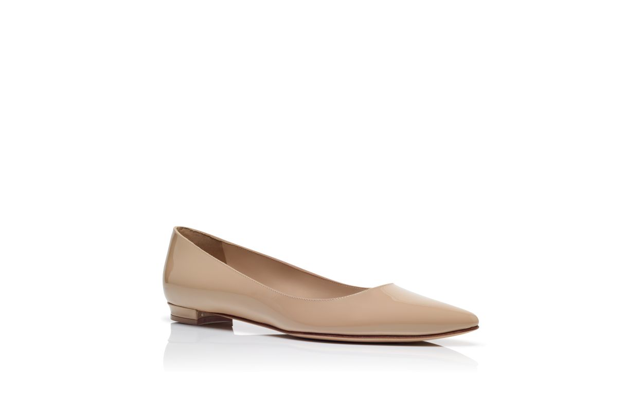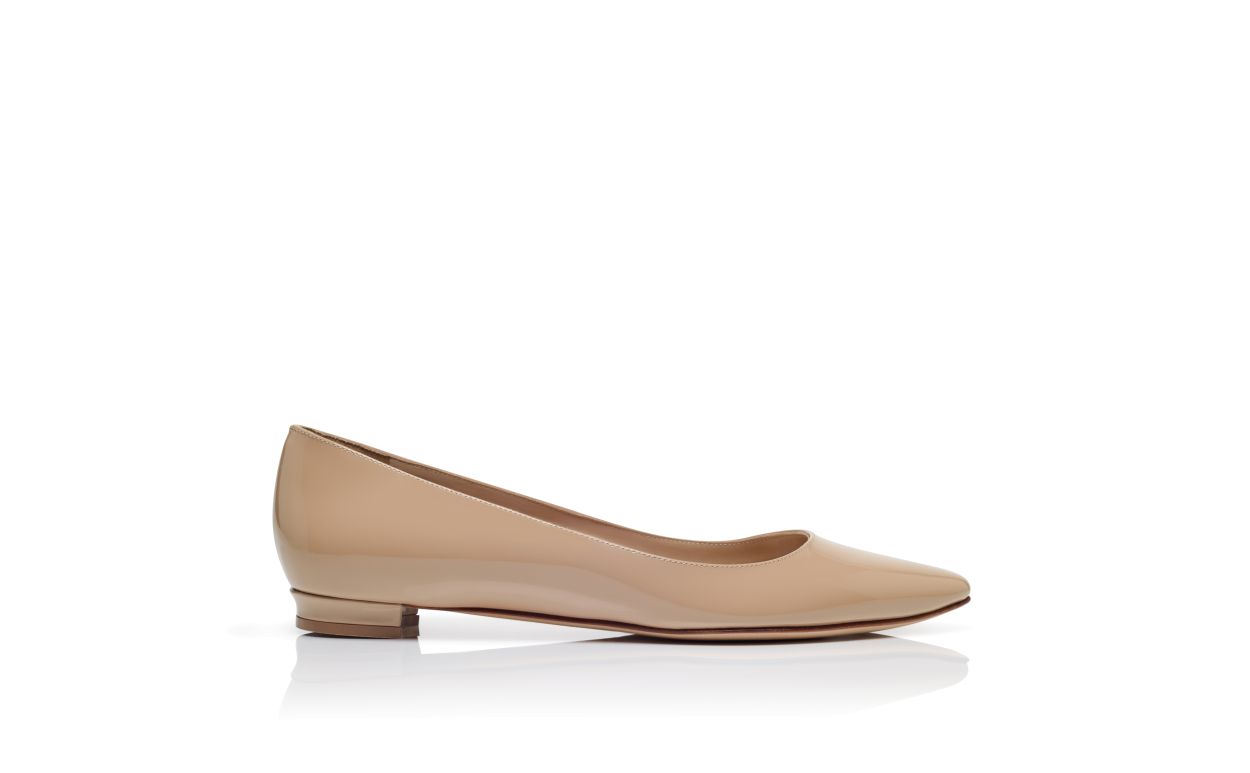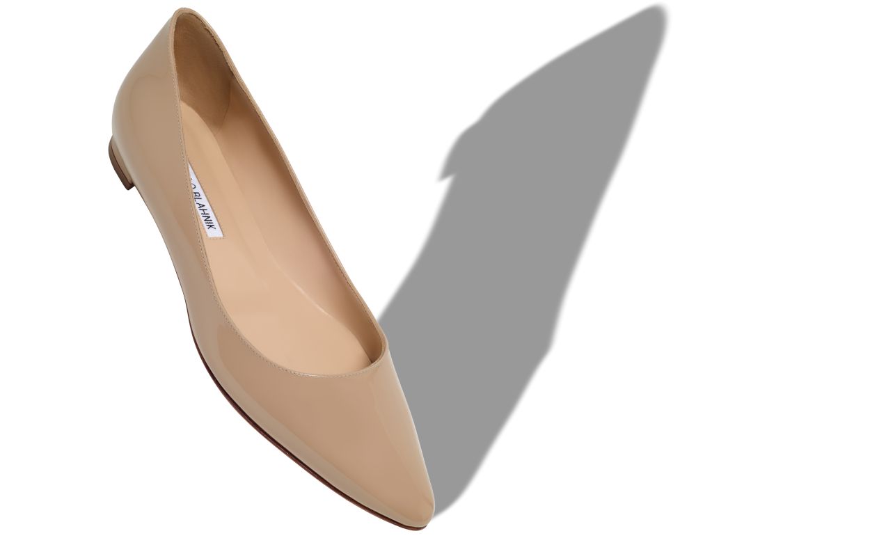 Manolo Blahnik Women’s Style Bbflat | Light Beige Patent Leather Pointed Toe Flat Pumps | Nude