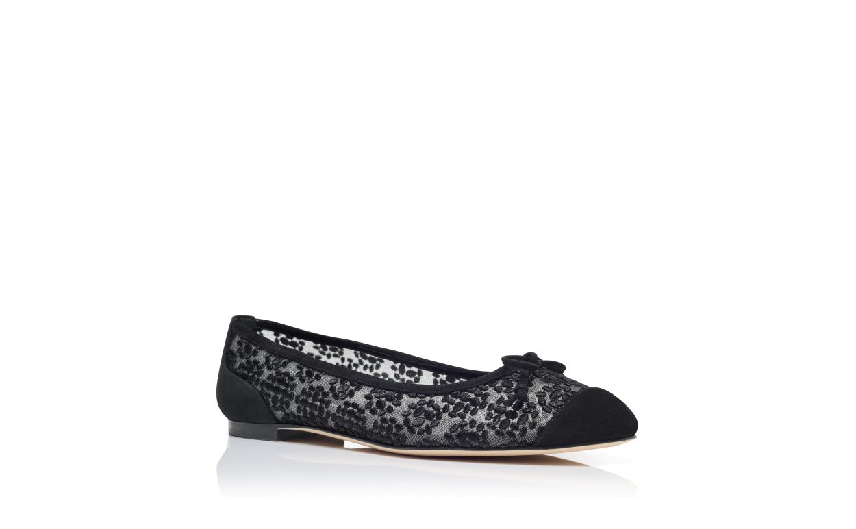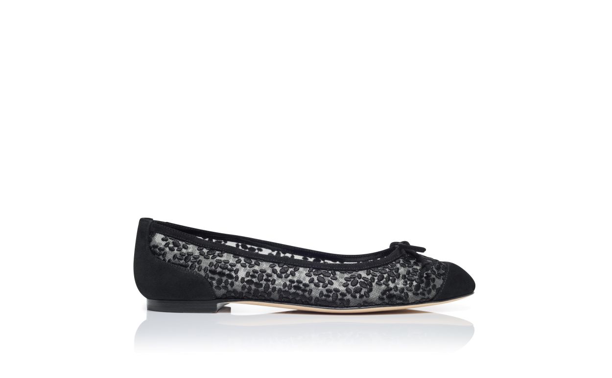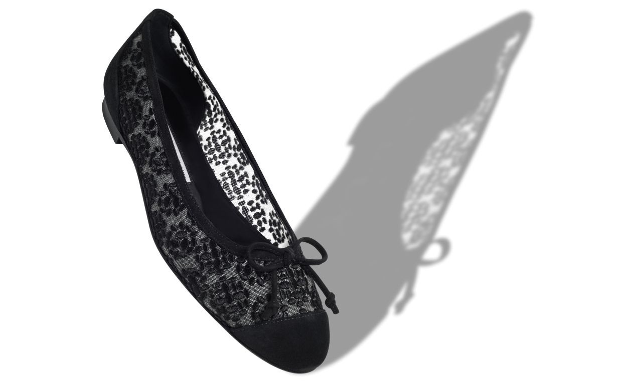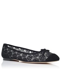 Black lace round toe ballerina flats featuring floral design and decorative bow detail. Finished with flat stacked heel.Upper: 90% lace, 10% kid suede. Sole: 100% calf leather. Lining: 100% kid leather.Heel measures 10 mm.Italian sizing.Made in Italy.
