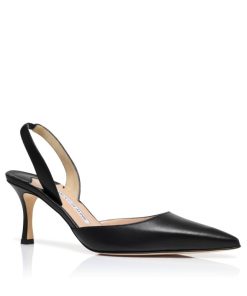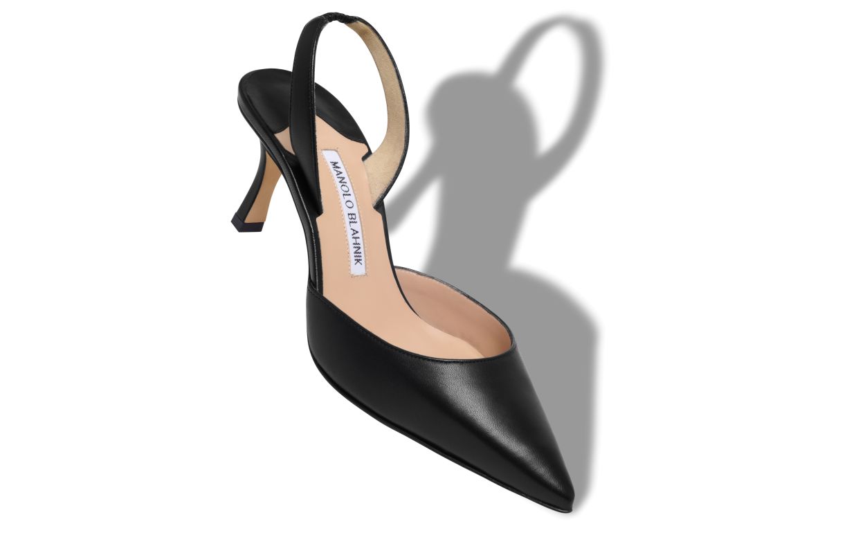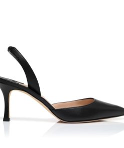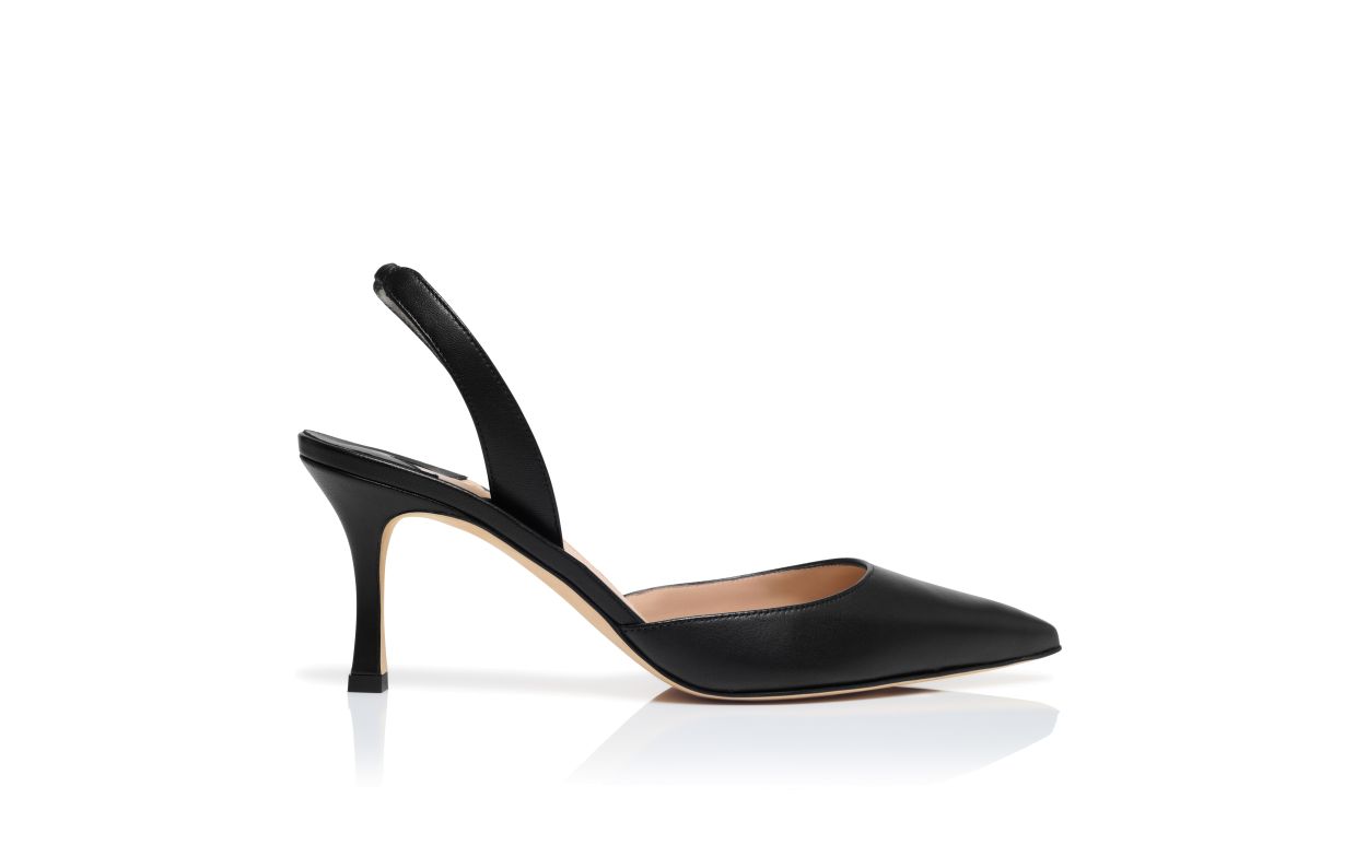 Black nappa leather pointed toe slingback pumps featuring stiletto mid heel.Upper: 100% lamb nappa. Sole: 100% calf leather. Lining: 100% kid leather. Heel measures 70 mm. Italian sizing. Made in Italy.