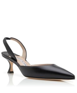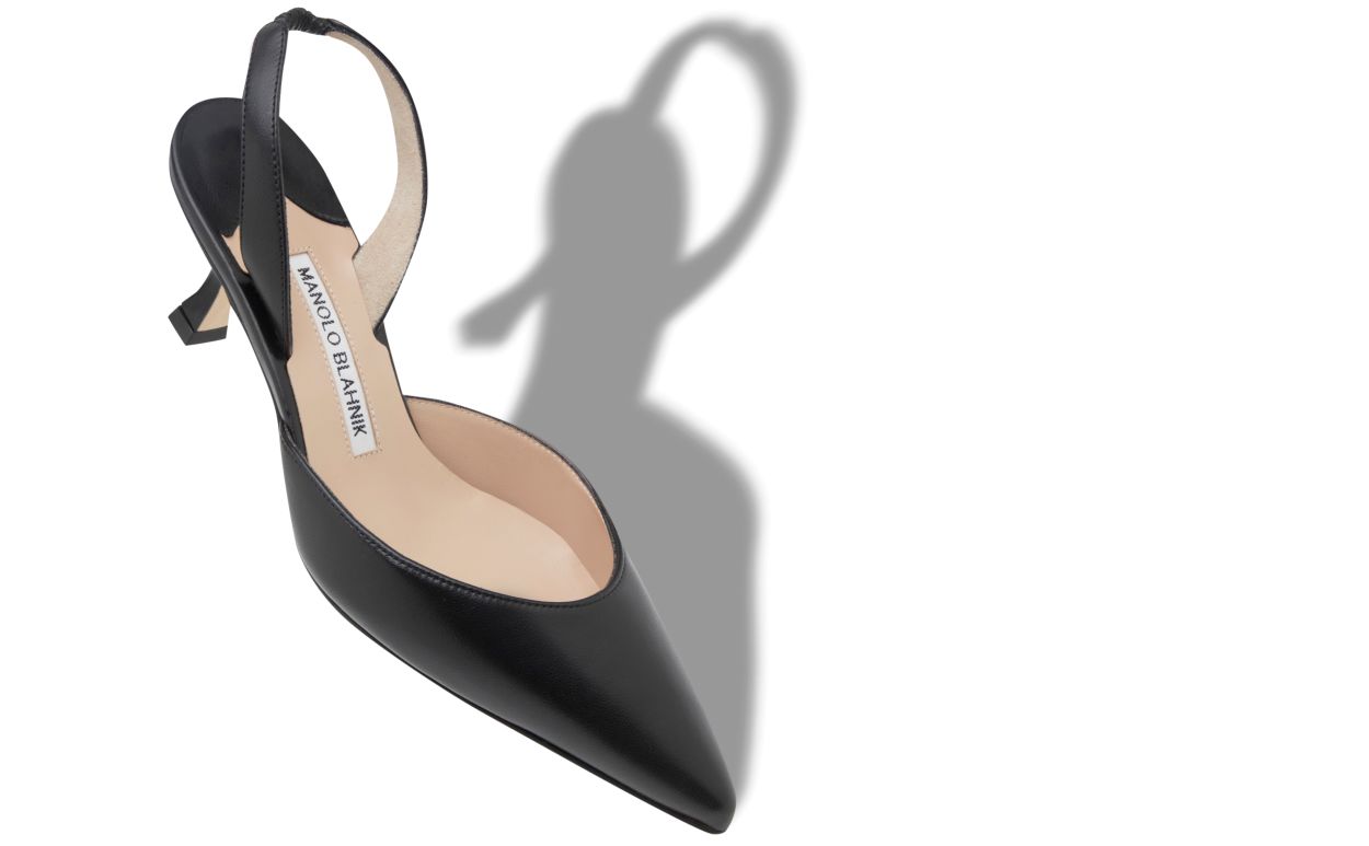 Black nappa leather almond toe slingback pumps featuring elasticated slingback design and stiletto low heel.Upper: 100% lamb nappa. Sole: 100% calf leather. Lining: 100% kid leather. Heel measures 50 mm. Italian sizing. Made in Italy.