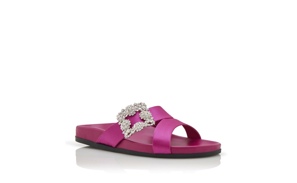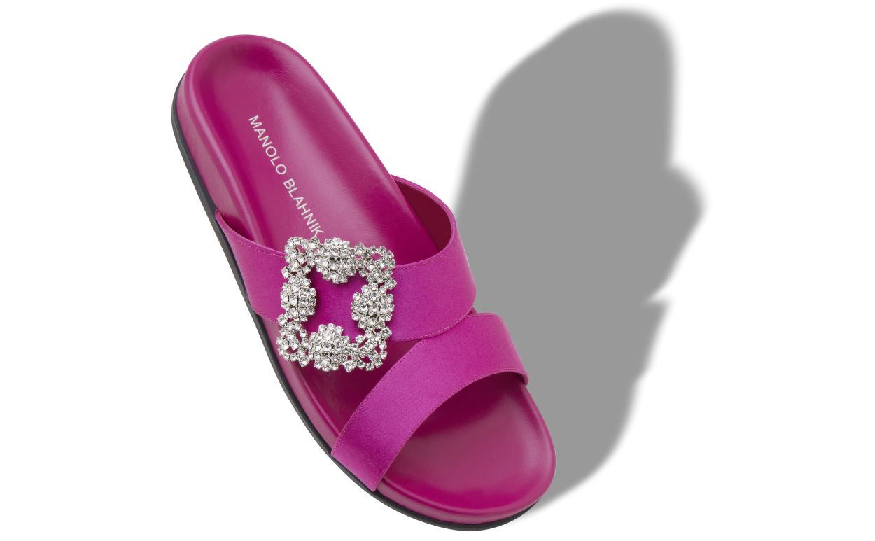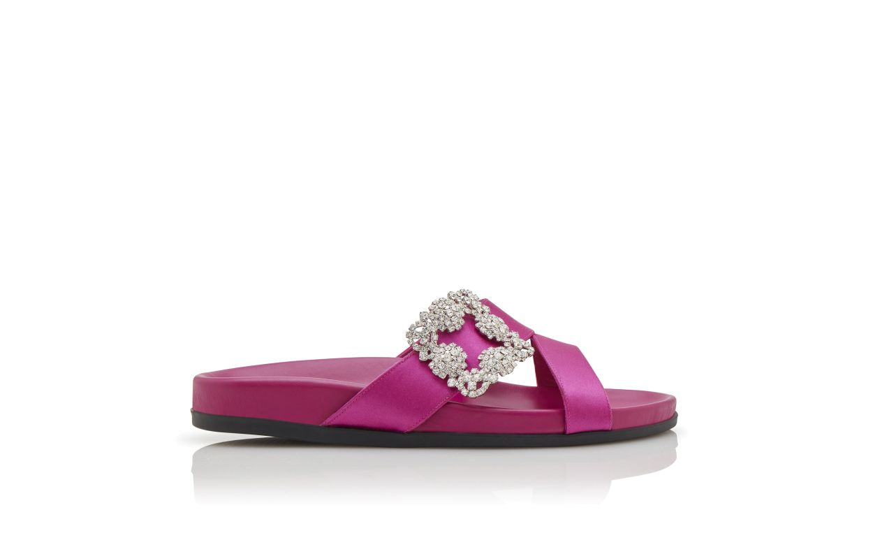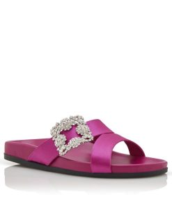 Manolo Blahnik Women’s Style Chilanghi | Dark Fuchsia Satin Jewel Buckle Flat Mules | Purple