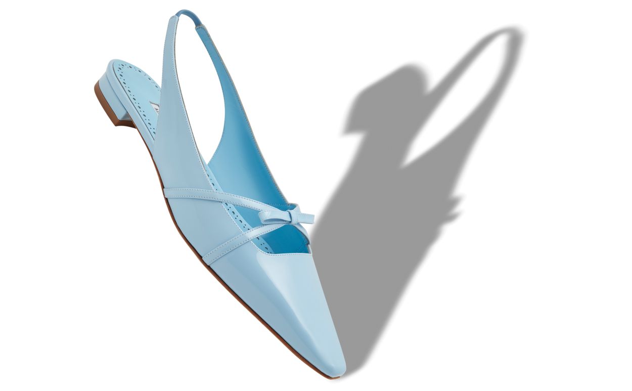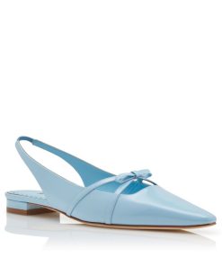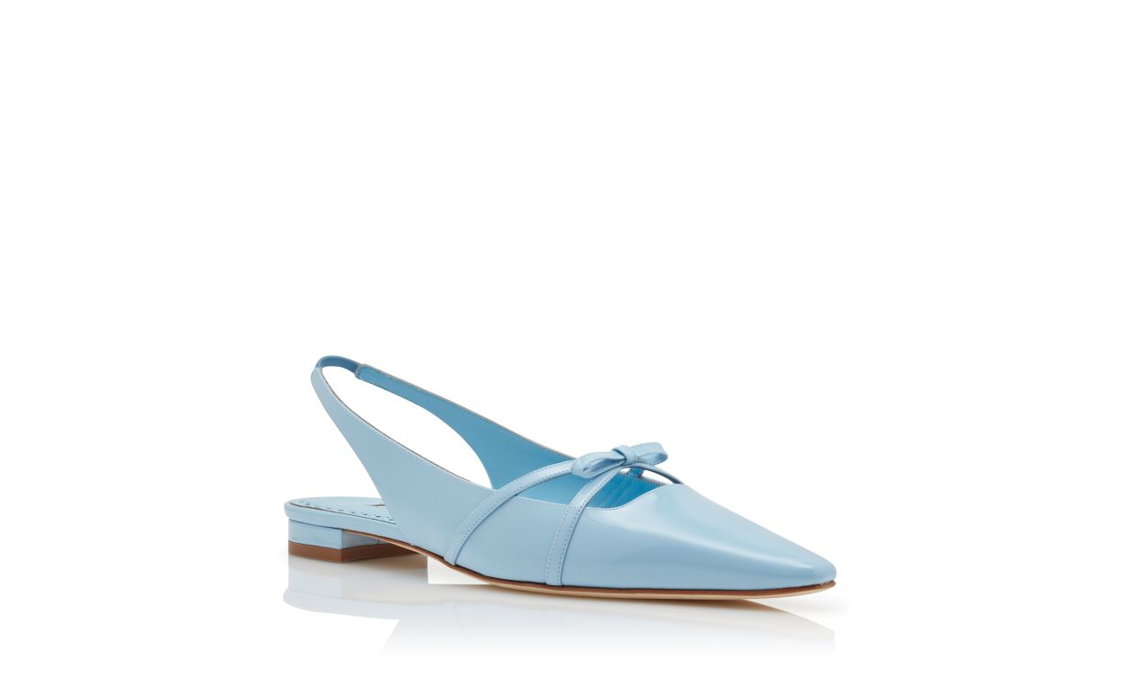 Manolo Blahnik Women’s Style Dariasli | Light Blue Patent Leather Bow Detail Slingback Flat Pumps | Blue