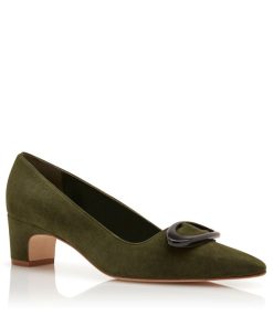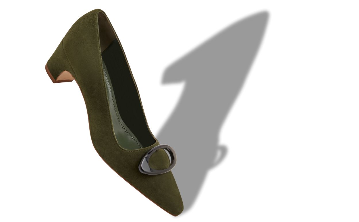 Manolo Blahnik Women’s Style Fenix | Dark Green Suede Pointed Toe Pumps | Khaki