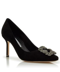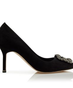 Manolo Blahnik Women’s Style Hangisi 90 | Black Velvet Jewel Buckle Pumps