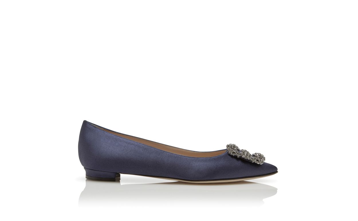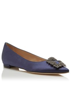 Manolo Blahnik Women’s Style Hangisiflat | Navy Satin Jewel Buckle Flat Pumps | Blue