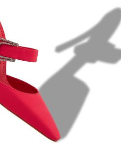Red crepe de chine pointed toe mules featuring instep strap with jewel buckle detail and flared block mid heel.Upper: 100% silk. Sole: 100% calf leather. Lining: 100% kid leather. Heel measures 70 mm. Italian sizing. Made in Italy.