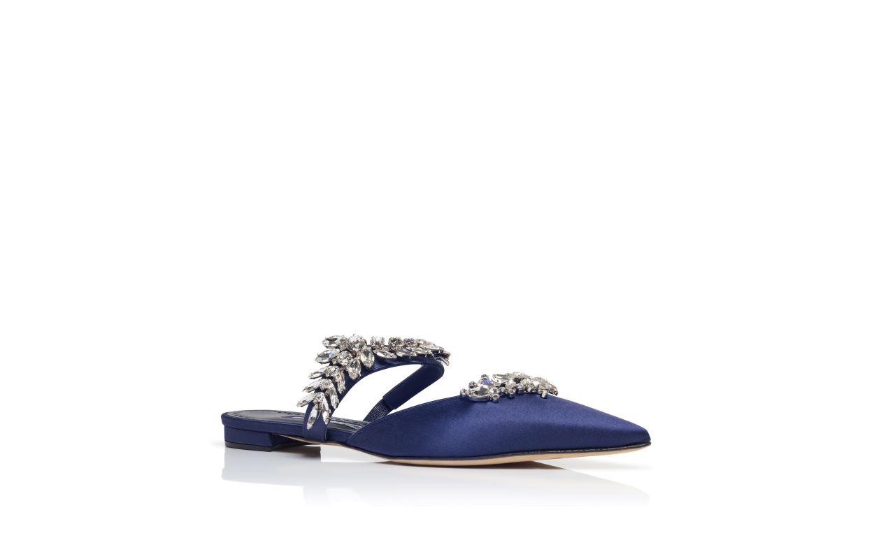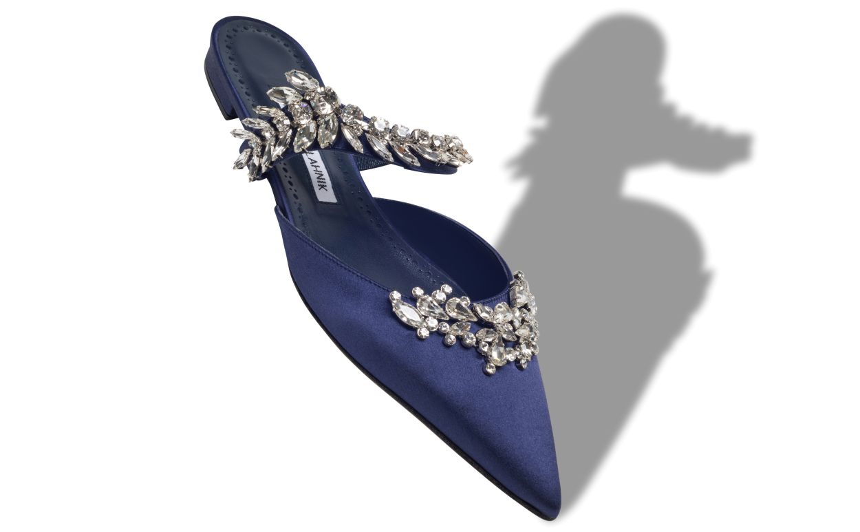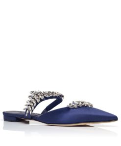 Manolo Blahnik Women’s Style Lurumflat | Navy Blue Satin Crystal Embellished Flat Mules | Blue