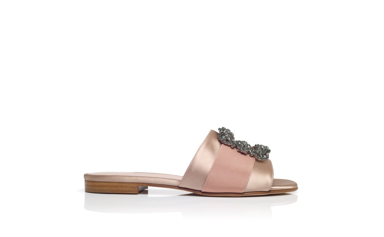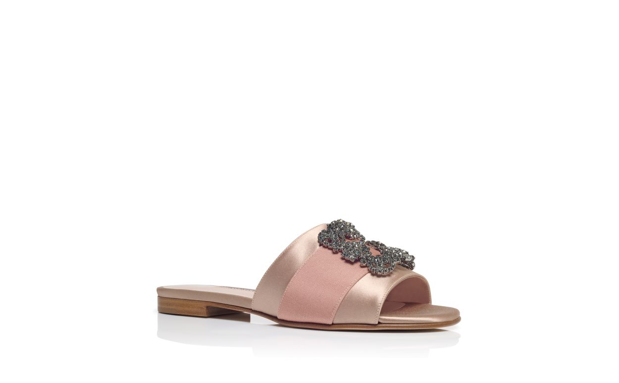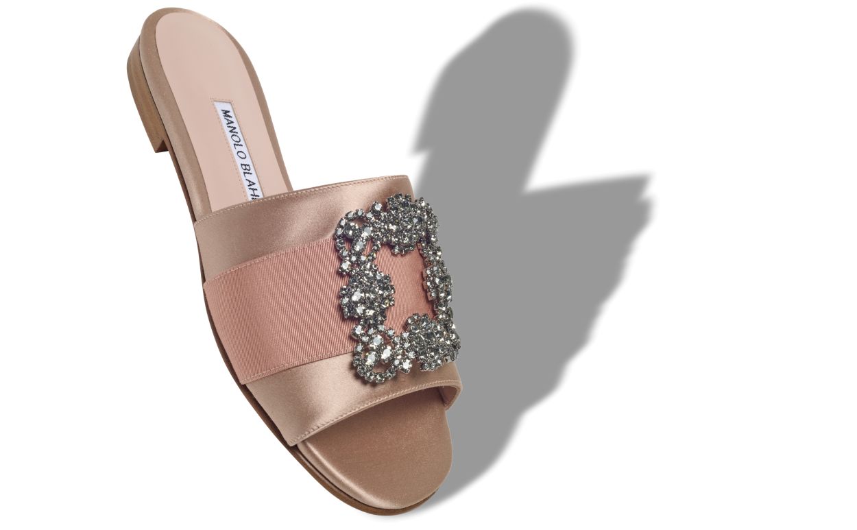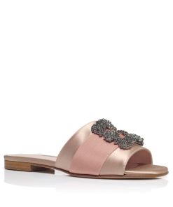 Manolo Blahnik Women’s Style Martamod | Beige Satin Jewel Buckled Flat Sandals | Nude