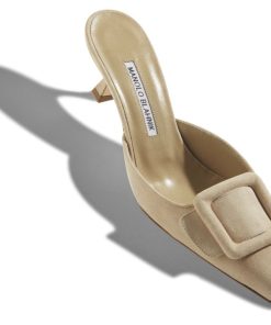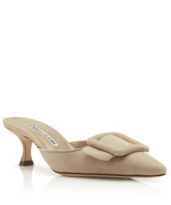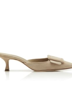 Manolo Blahnik Women’s Style Maysale | Beige Suede Kitten Heel Mules | Nude