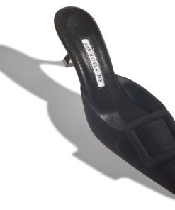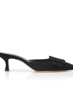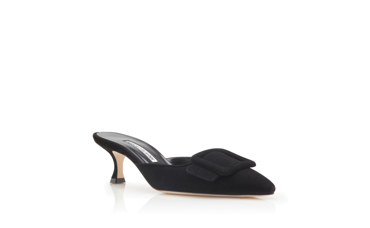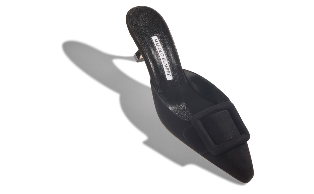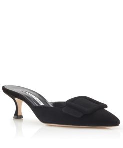 Manolo Blahnik Women’s Style Maysale | Black Suede Kitten Heel Mules | Black