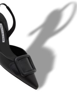 Black nappa leather pointed toe slingback pumps featuring decorative buckle detail, elasticated slingback strap and stiletto mid heel. Upper: 100% lamb nappa. Sole: 100% calf leather. Lining: 100% kid leather. Heel measures 70 mm. Italian sizing. Made in Italy.