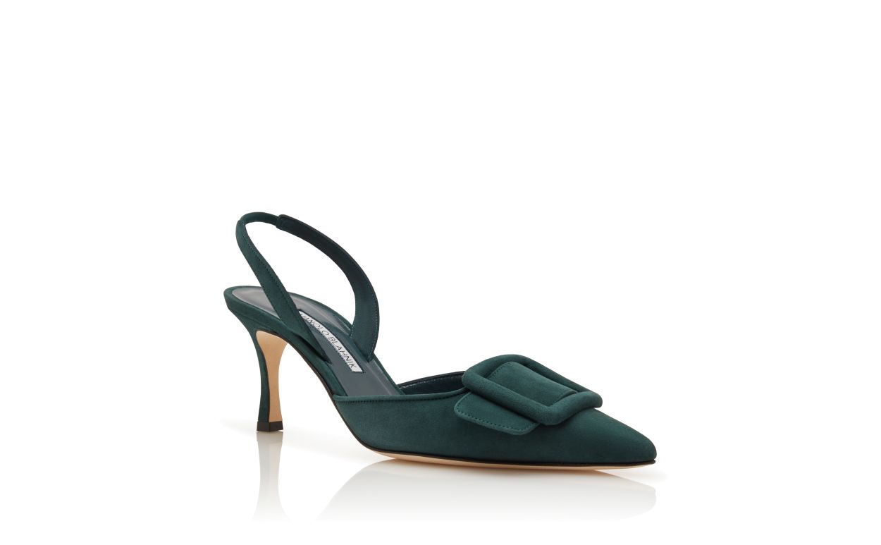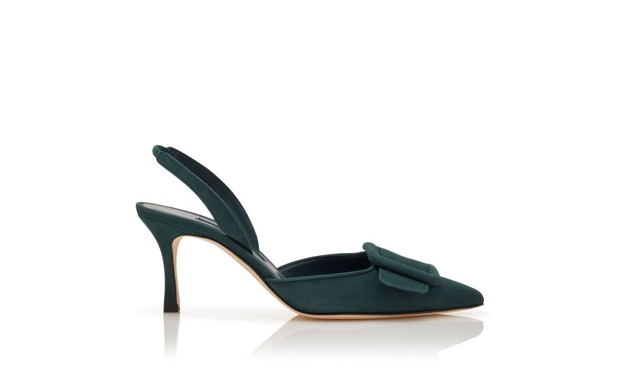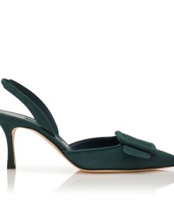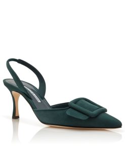 Manolo Blahnik Women’s Style Maysli | Dark Green Suede Buckle Detail Slingback Pumps | Green