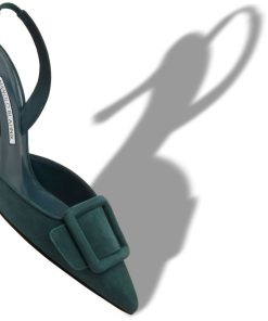 Manolo Blahnik Women’s Style Maysli | Dark Green Suede Buckle Detail Slingback Pumps | Green