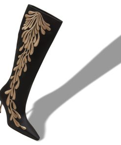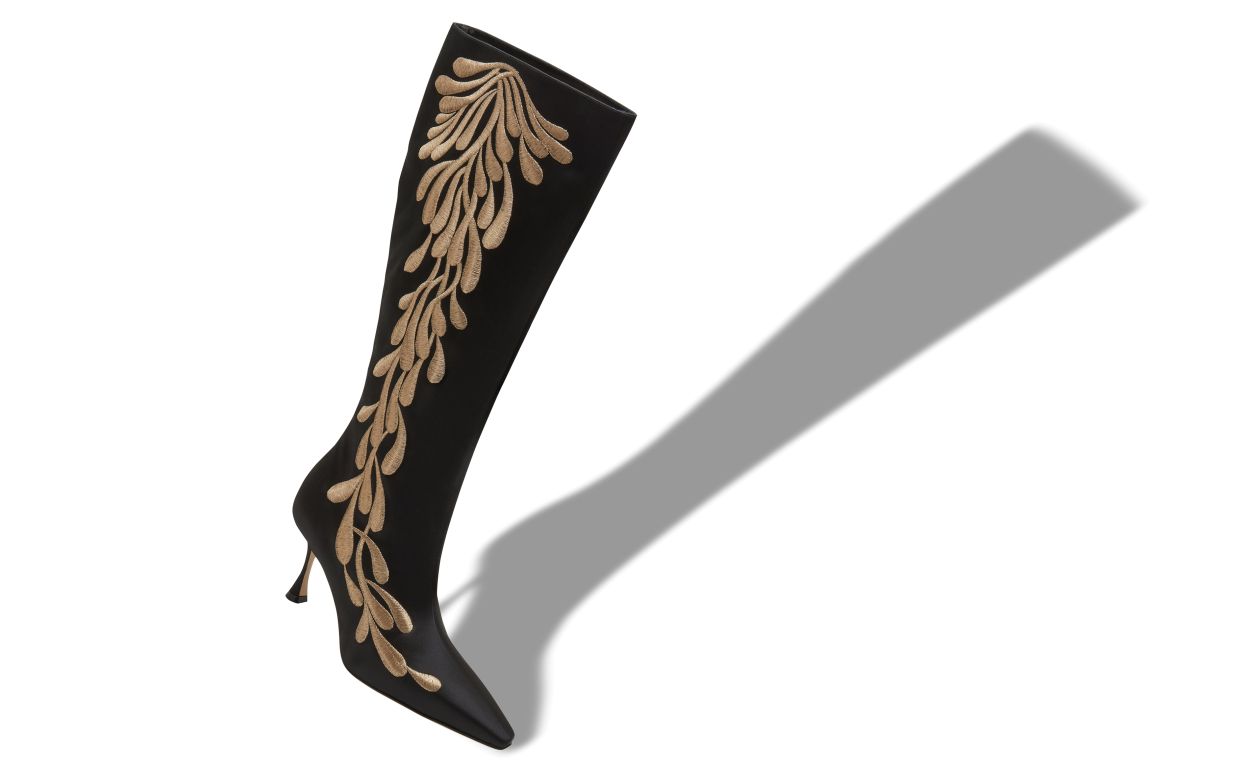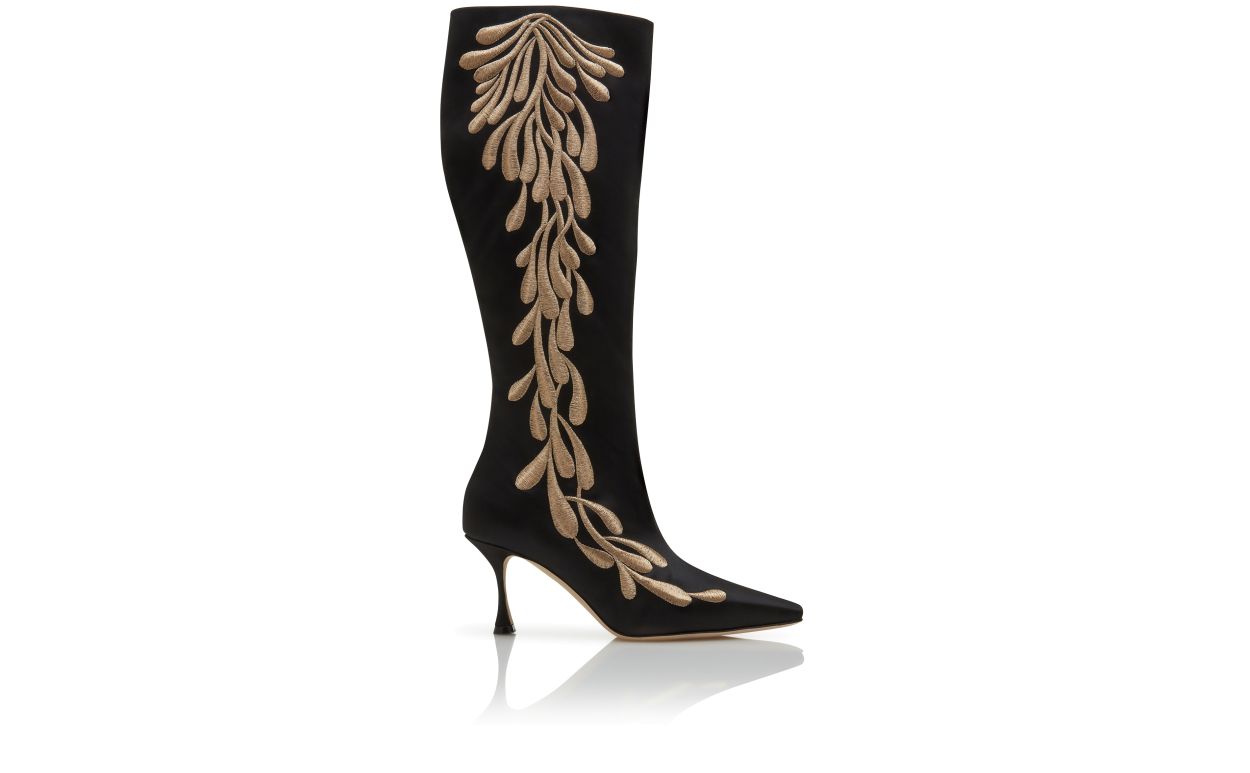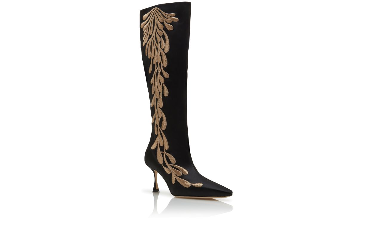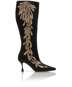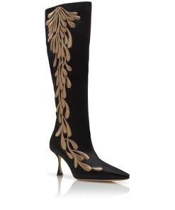 Manolo Blahnik Women’s Style Menki | Black And Gold Satin Knee High Boots