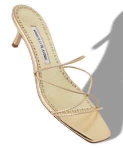 Manolo Blahnik Women’s Style Ninfemu | Gold Nappa Leather Open Toe Mules